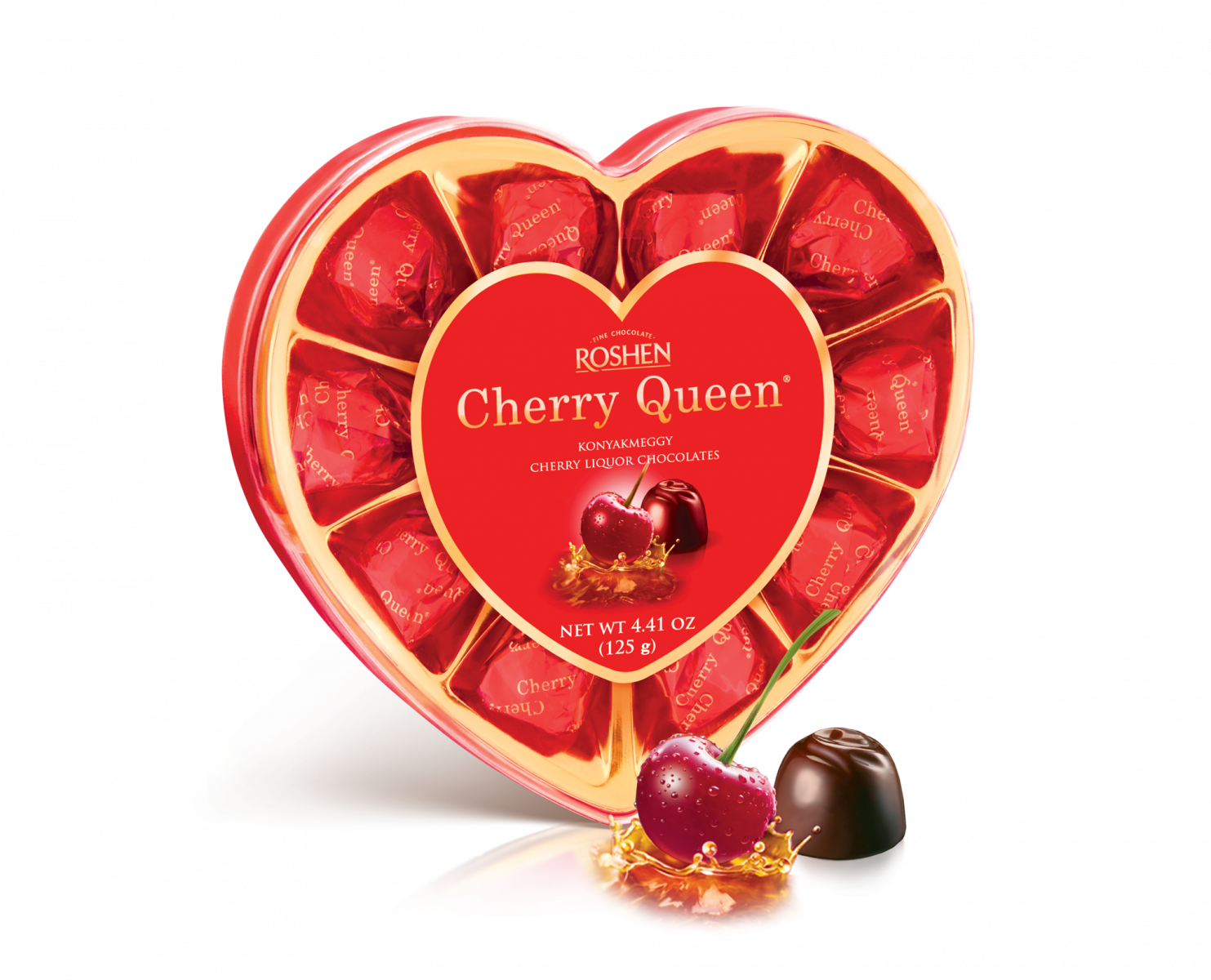 Roshen Cutie cu bomboane Cherry Queen, vișină în lichior (inima) 125g